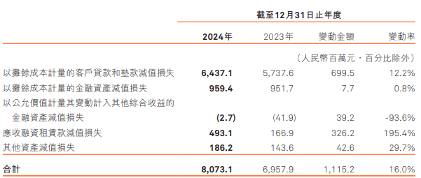 信用减值损失同比增长16%