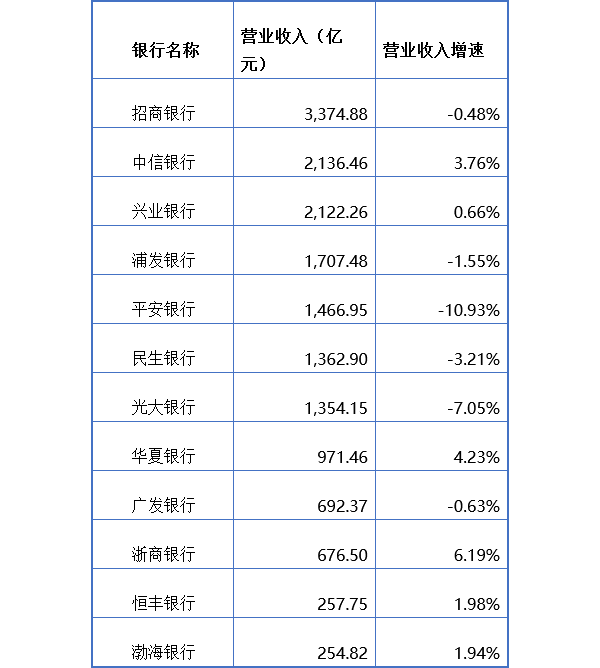 我国12家全国性股份制商业银行2024年度业绩报告显示,招商银行2024年实现营业收入3,374.88亿元夺冠,中信银行超越兴业银行跻身第二位。浦发银行的营业收入已掉出第一梯队。2024年,浦发银行实现营业收入1707.48亿元,同比下滑1.55%,排名股份行第四。但浦发银行与第三名兴业银行的营业收入差距已经扩大至414.78亿元。