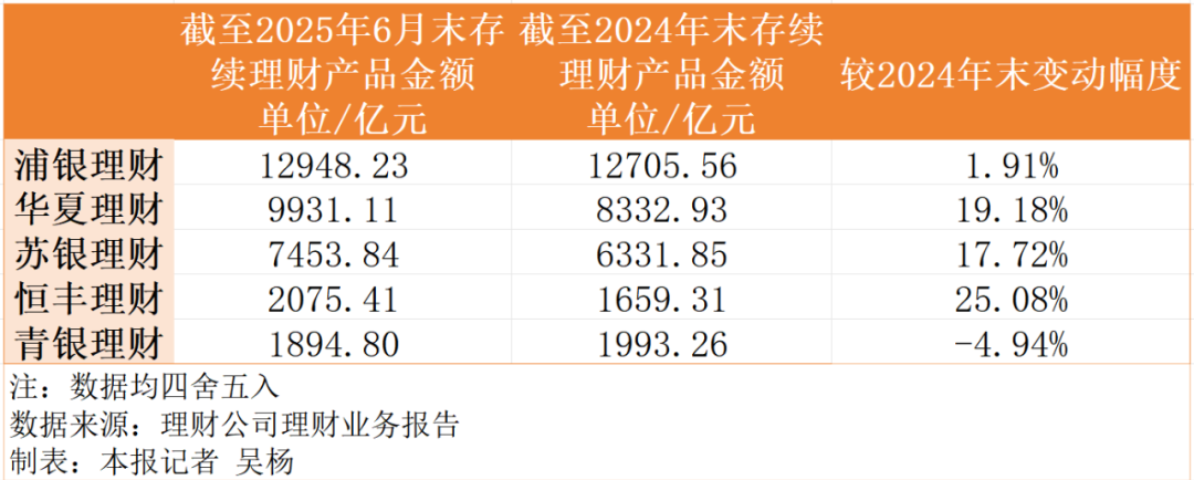 据中国证券报记者不完全统计,截至7月25日,浦银理财、华夏理财、苏银理财、恒丰理财、青银理财5家理财公司已披露2025年上半年理财业务报告。整体来看,多数理财公司的管理规模呈现正增长,固收类理财产品为主流。