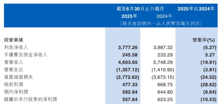 中国经济网北京9月8日讯 江西银行(01916.HK)日前发布截至2025年6月30日止六个月之中期业绩公告。今年上半年,江西银行实现营业收入为46.04亿元,同比减少19.91%;归属于该行股东的净利润为5.58亿元,同比减少10.53%。