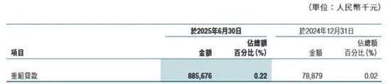 同期末,东莞农商银行重组贷款8.86亿元,较上年末的0.79亿元增逾10倍;占比由0.02%骤升至0.22%。所谓重组贷款,是指因借款人、担保或还款发生变更而重新商定合同条款的贷款。