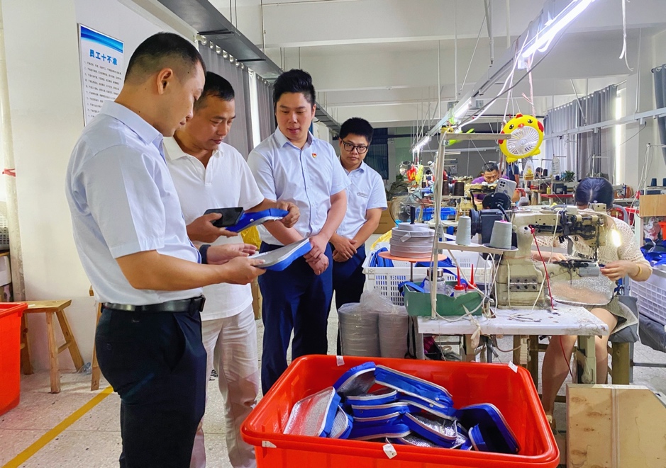 从零散加工,到如今300多家箱包企业落户横峰,形成从面料供应到成品销售的完整产业链,横峰箱包的集群发展离不开九江银行金融活水的精准滋润。洞察中小微企业普遍面临“轻资产、缺抵押、融资难”问题,九江银行横峰支行党支部与园区管委会建立长期共建机制,常态化开展“百企走访”行动,党员干部分片包联企业,带着金融服务清单上门,既能第一时间掌握企业的资金需求,也能深入了解生产经营中的实际困难,针对性制定金融服务方案。