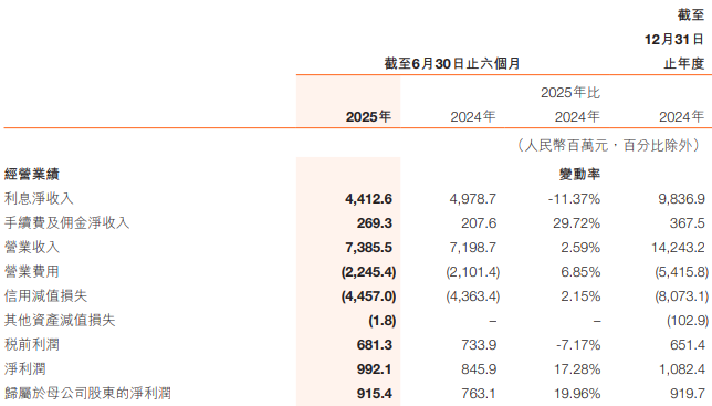 中国经济网北京9月16日讯 哈尔滨银行(06138.HK)日前发布截至2025年6月30日止六个月中期业绩。2025年上半年,哈尔滨银行实现营业收入73.86亿元,同比增长2.59%;实现净利润9.92亿元,同比增长17.28%;实现归属于母公司股东的净利润9.15亿元,同比增长19.96%。