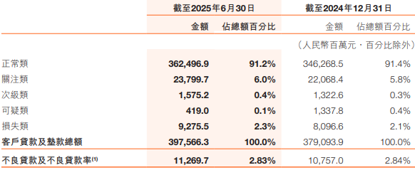 截至2025年6月30日,哈尔滨银行不良贷款余额为112.70亿元,上年末为107.57亿元;不良贷款率为2.83%,较上年末下降0.01个百分点;拨备覆盖率为209.95%,较上年末上升7.36个百分点。