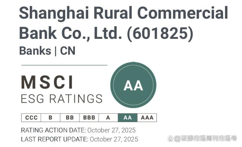 沪农商行MSCI ESG评级跃升至AA级 跻身全球同业领先行列