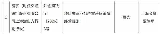 与此同时,时任交通银行上海分行消费金融部总经理的姜某、普惠金融部副总经理的王某、上海自贸试验区分行行长助理兼大客户五部总经理助理的丁某,以及上海五家支行的副行长,分别被给予警告或警告并罚款5万元的处分。