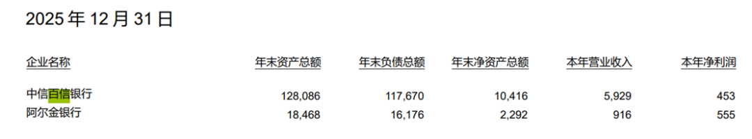 近日,中信银行发布2025年年报,其合营企业中信百信银行2025年业绩也随之披露。