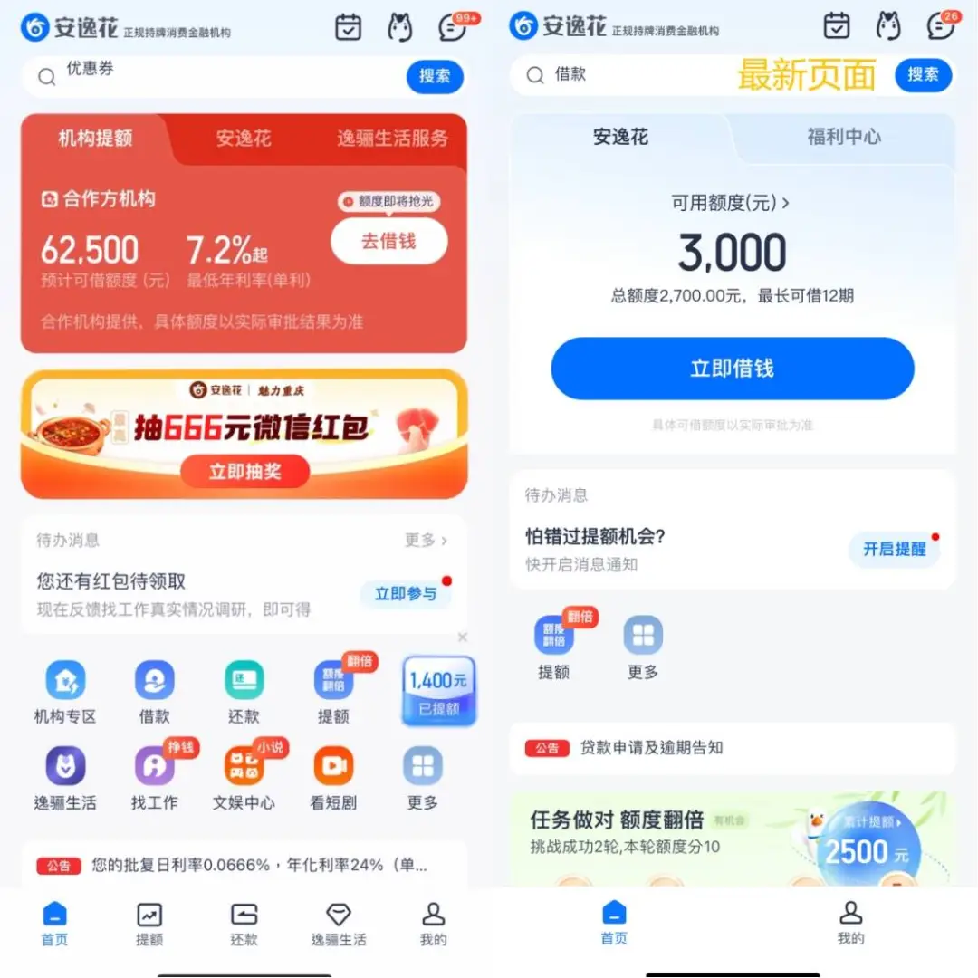 图片来源:安逸花首页页面截图先后对比