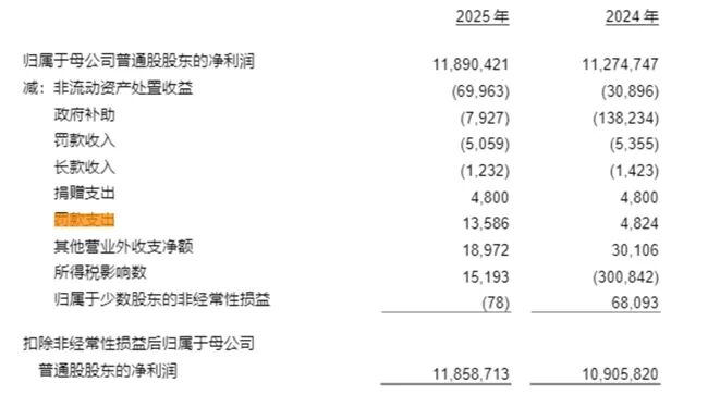 此外,值得注意的是,重庆农商行全年的罚款支出大幅增加。据财报披露,2024年该行罚款支出为482.4万元,2025年为1358.6万元,较上年增加了876.2万元,增幅达181.63%。
