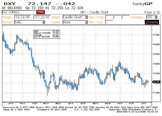 上周五美国没有重要经济数据公布,消息面上,继JPMorganChase与WellsFargo分别公布好于预期的业绩,花旗集团也公布第二季亏损25亿美元,受累于信贷市场恶化和经济走软导致的资产减记和信贷损失,但每股亏损小于市场预期,受此影响下,花旗股价周五跳升7.7%,美元亦在其扶助下上涨。