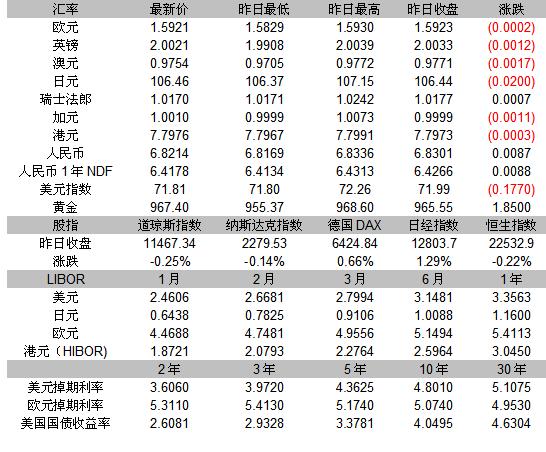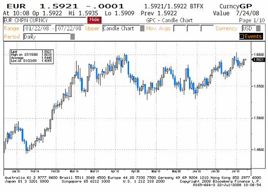 外汇市场上,美元下跌,尽管美国银行公布的第二季财报优于分析师预测,不过本周将有包括瓦乔维亚在内的一大堆银行财报出炉,投资者在此之前依然保持谨慎。尾盘时,欧元/美元上升0.3%报1.5898美元,美元兑日圆下滑0.2%至106.69日圆。