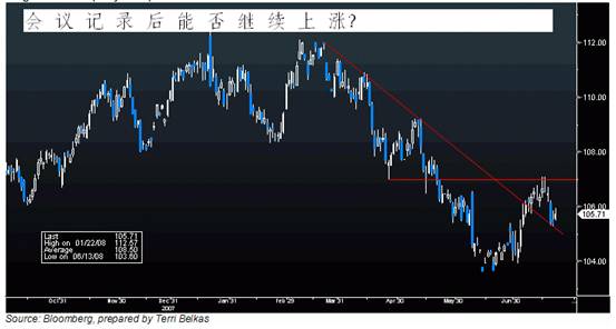 长期金边国债期货本周自趋势线支持反弹,今日公布的英央行会议记录可能带来波动,若记录显示委员一致赞成保持利率不变,甚至有人投票加息,那厶金边国债期货将跌向105,若继续有一票减息甚至更多减息呼声,国债期货将有望突破短期阻力,涨向107。