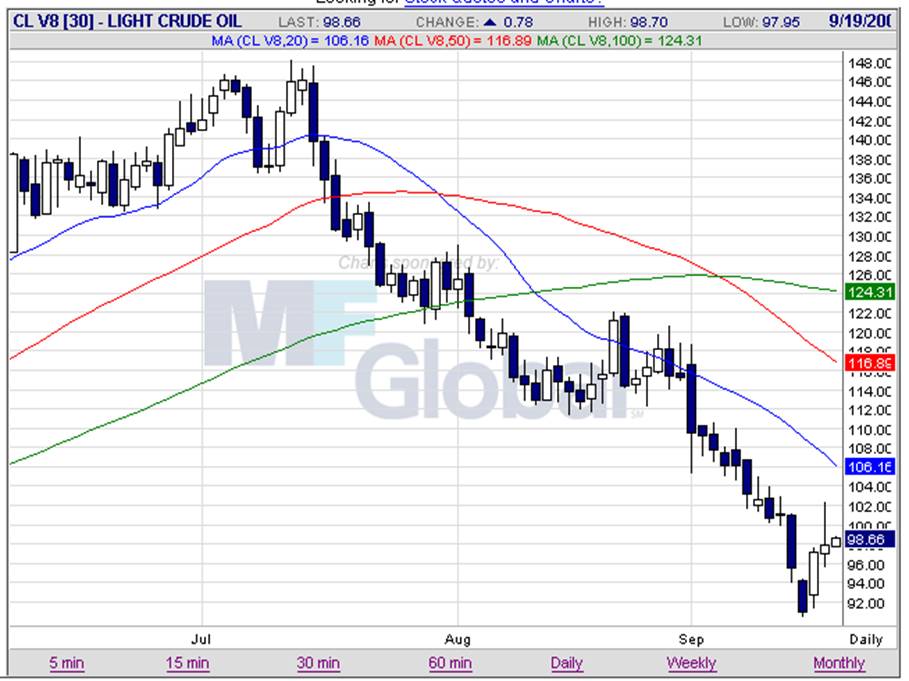 美国原油期货周四收高,盘中交投震荡,交易商称主要是因为美元疲软。原油期货稍早曾走低,之後受全球央行联手向货币市场注资提振曾大涨逾5美元。纽约商业期货交易所原油期货收高0.72美元报97.88美元每桶。金价继续受到避险需求支持,连续第二日大幅上涨,纽约商品期货交易所收高46.50美元至897.00美元每盎司。