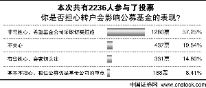 随着基金公司专户理财资格的相继获批,专户是否会对公募基金的业绩产生负面影响,成了广大投资者近期关注的热点。中国证券网最新调查显示,超过五成的基民非常担心基金公司开展专户业务后会影响公募基金的表现,希望基金公司能够采取切实措施保护公募基金客户的利益。