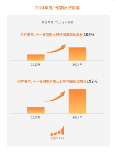 T3出行年度数据报告发布 2024年假期出行需求同比增长105%