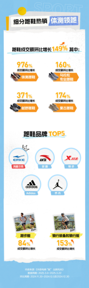 春日运动消费升温,抖音电商跑鞋成交额环比增长149%