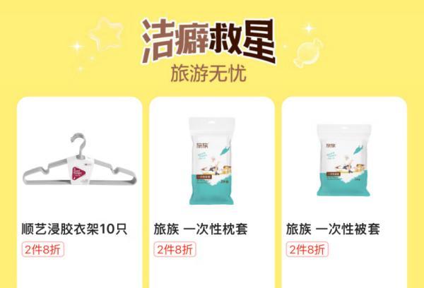 针对五一出行高峰,京东七鲜特别推出旅行必备生活用品专场。一次性枕套、被套等独立包装,安全卫生,让酒店住宿更安心,还有男女士休闲凉拖鞋等众多洗护商品均享“2件8折”优惠,让洁癖星人轻装上阵,出行无忧。
