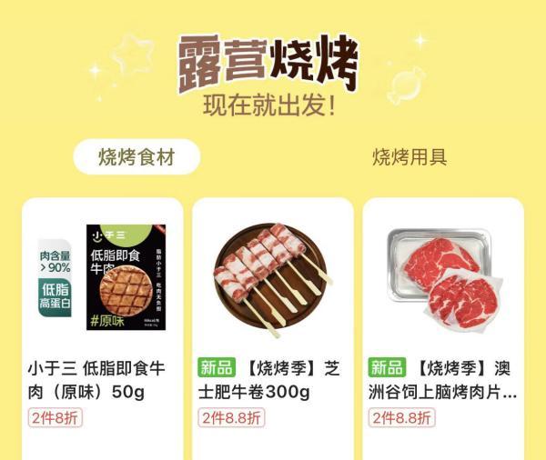 对于计划露营烧烤的消费者,京东七鲜【烧烤季】专区火力全开。澳洲谷饲上脑烤肉片、进口谷饲薄切眼肉牛排、芝士肥牛卷等2件即享8.8折,搭配各种丰富的烧烤调料和烧烤用具,让您一站式购齐露营装备,尽享烧烤乐趣。