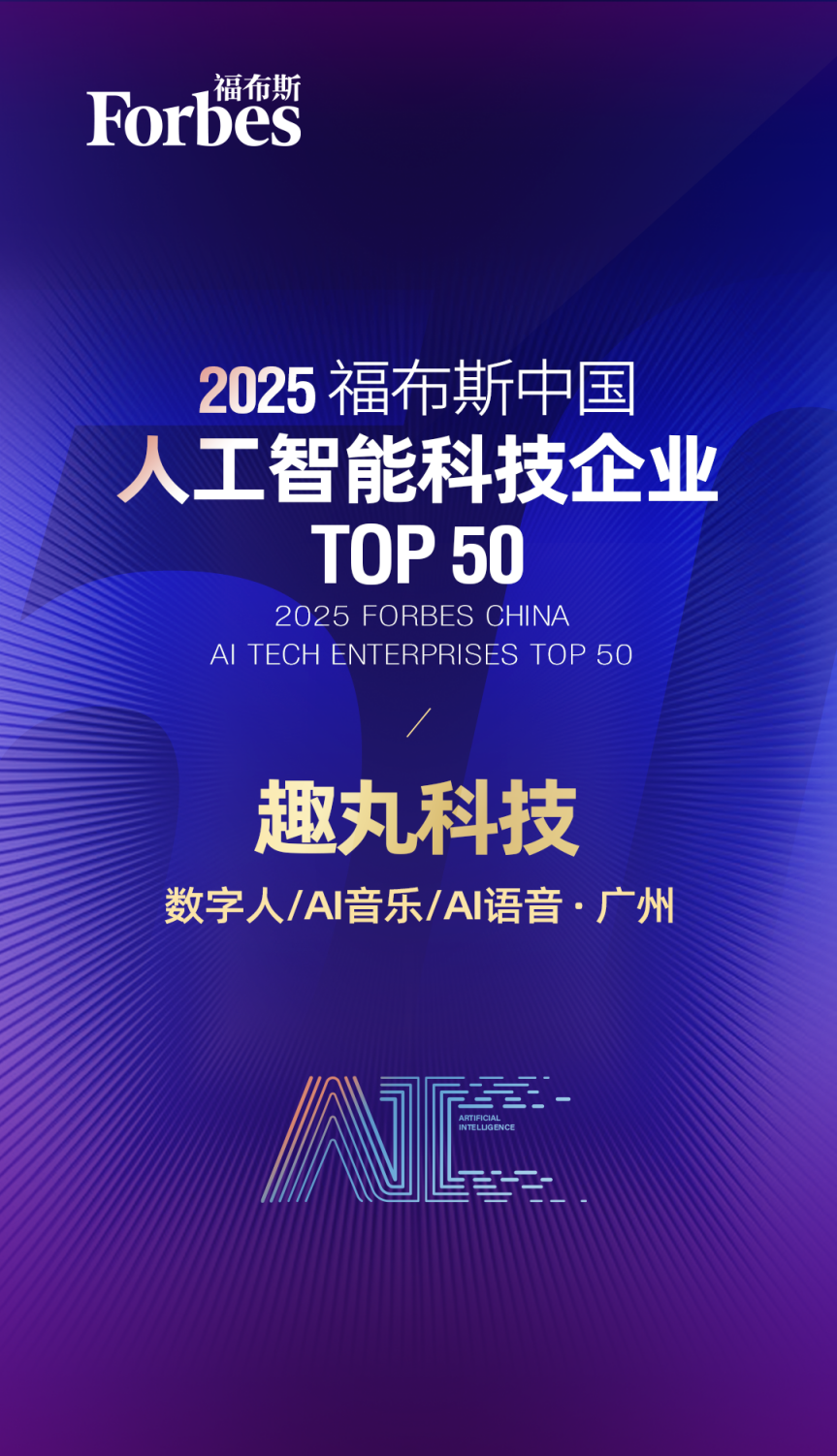 广州唯一上榜企业!趣丸科技荣登福布斯中国人工智能科技企业TOP50