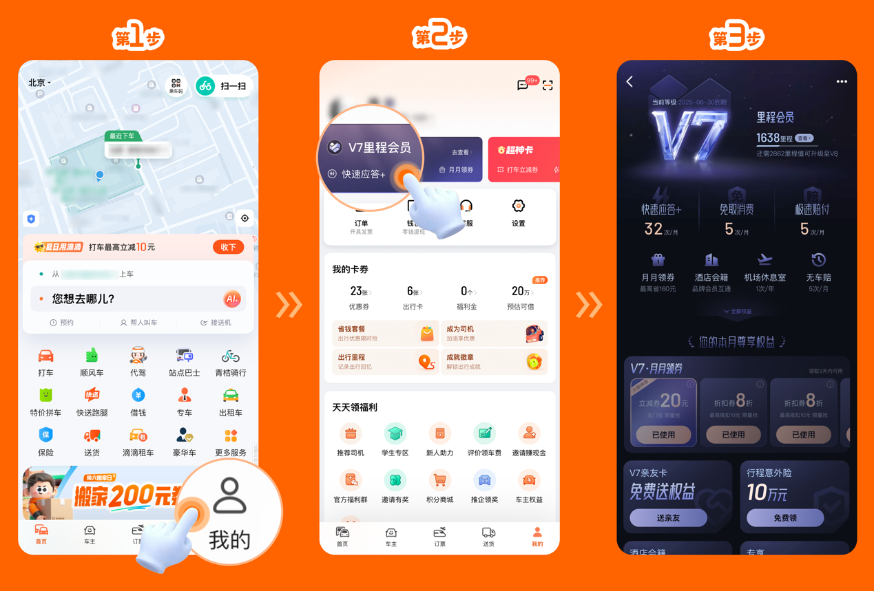 图注:进入滴滴App或小程序的里程会员中心,可查看会员权益明细