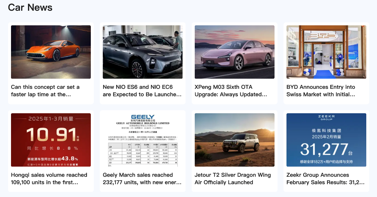 平台集成媲美国内顶级网站的完整车型数据库,尤其精耕当地市场热销的中国品牌车型。目前网站已覆盖660+个品牌,包含2900+个车系、6800+个车款,覆盖3300+经销商。通过80000+张海外售卖车型实拍图,2800+视频,126800+条新闻资讯多维度展示呈现每一款产品,从凌厉的车身线条到细腻的流线工艺,细节之美尽收眼底,彷佛亲临车展。