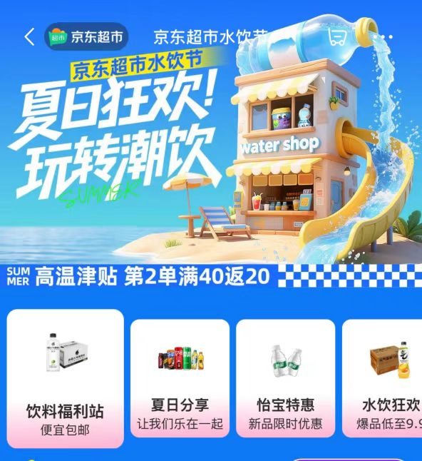京东超市夏日高温津贴活动是京东超市水饮节的重要组成。基于消费者对于消暑商品的需求,京东超市7月17日至26日全面上线水饮节活动,不仅带来超百款新潮新奇水饮,水饮商品9折优惠福利,还将开展多场品牌秒杀日、采销直播、9.9试吃等专场活动,丰富消费者的消暑选择。