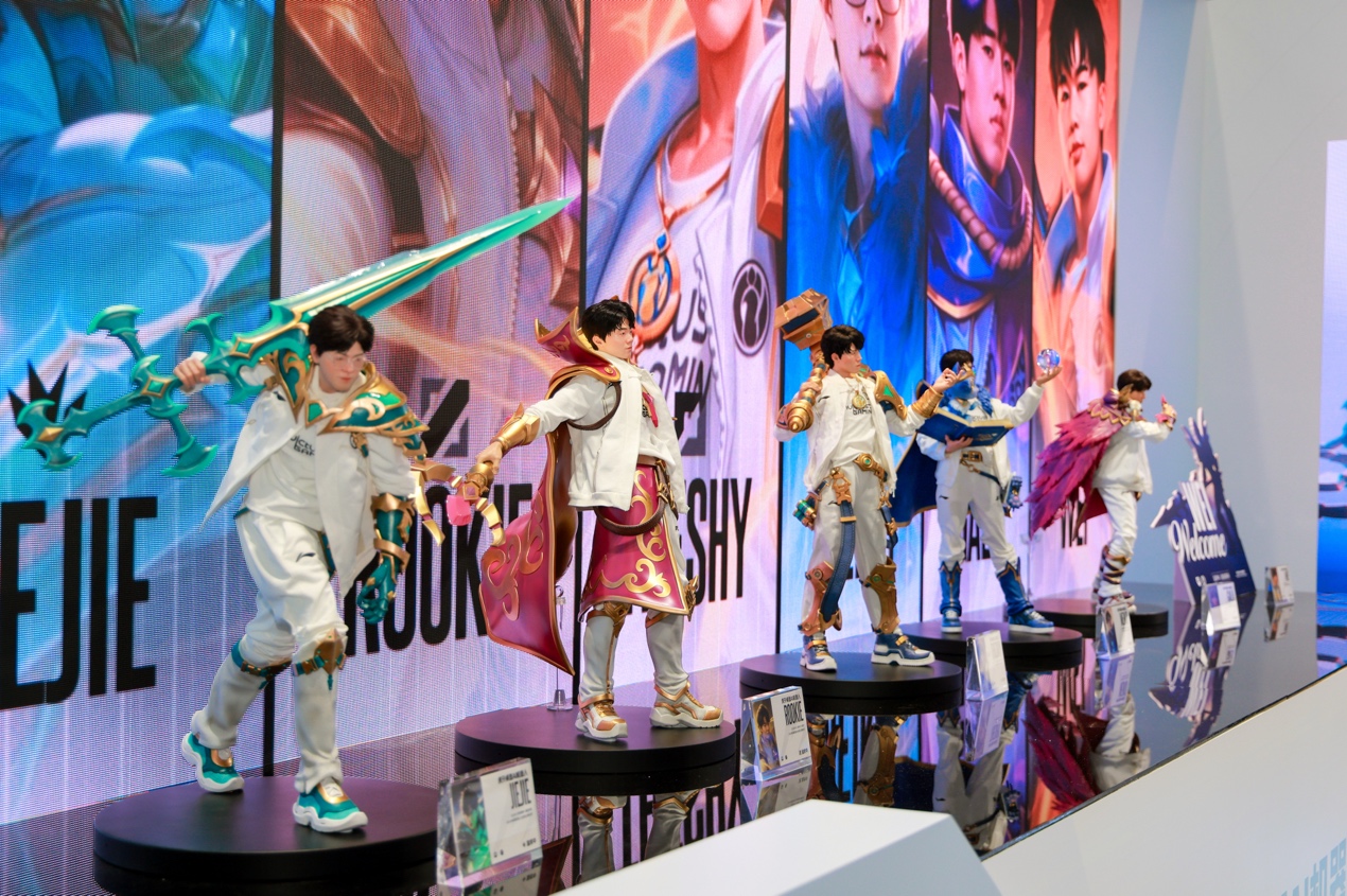 今年ChinaJoy的虎牙展区通过电控机器人展台与静态模型战队墙的呼应,打造出一个既能沉浸感受战队精神,又能深度连接用户情绪的电竞机器人体验空间。现场展出多款“虎牙i超体”机器人,精准还原了TheShy、Rookie等电竞选手的外形细节,甚至包括发型弧度、队服细节等,让粉丝“零距离”感受偶像的魅力。