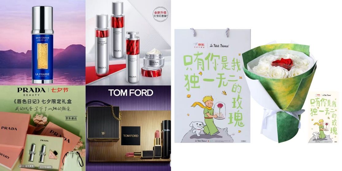 本次京东服饰美妆七夕礼遇季特别推出“买礼物加赠永生花”,覆盖莱珀妮鱼子酱精华、珀莱雅红宝石礼盒、PRADA七夕“明星双色”礼盒、TOM FORD七夕限定唇香礼盒等众多热门好物,购买即送小王子IP联名永生花,定制插画图案搭配红、白玫瑰花束,让七夕爱意双倍抵达。