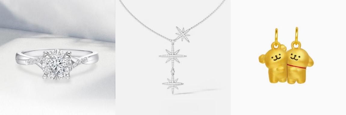 七夕如有备婚计划,不妨入手DR光芒铂金戒指,一生仅能为一人定制,光芒纯粹闪耀,恰好是纯粹爱意的见证;颈链可选APM Monaco 杨紫同款六芒星项链,如流星划过颈间,为造型注入灵动美感,赠予爱人尽显心意;还可选择潮宏基线条小狗黄金吊坠,可爱造型惹人喜爱,磁铁设计可随意组合,是情侣送礼的不二之选。
