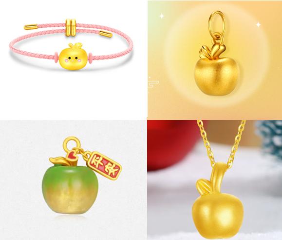 秋意渐浓,一抹闪耀的金色能够提升穿搭精致感,本次上线的多款黄金苹果饰品中, SoinLove宝藏女孩金苹果黄金转运珠,采用可爱卡通苹果造型设计,可盐可甜;想要个性十足,周大生黄金苹果转运珠可别错过,温感珐琅工艺绘色,可以随温度变化而变色,搭配平安喜乐挂牌,轻松拿捏住时尚感;如果更偏爱经典款,可选择蒂蔻黄金苹果项链吊坠或金至尊黄金苹果吊坠,简约苹果造型,立体饱满,别致又显档次。