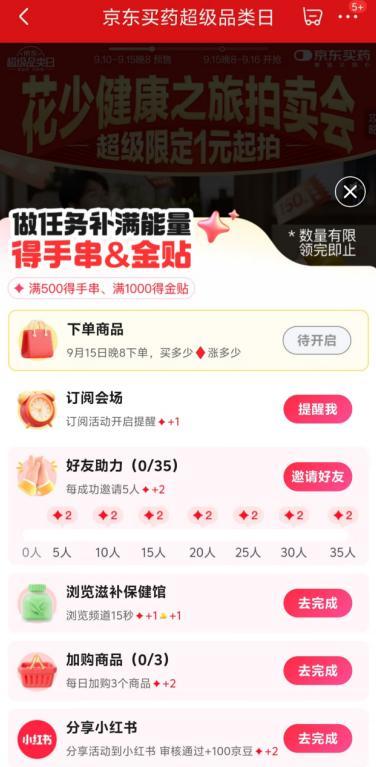 为了满足大家“邪修”养生的需求,京东买药9月15日晚8点-9月16日的超级品类日活动,推出千元健康补贴,以及7.2折起等优惠,健康好物覆盖秋季进补、换季防护、中秋送礼等多场景的健康需求。不仅如此,用户来到活动会场,完成指定任务即可领取金贴与健康手串等惊喜好礼,实现从身体到心理、从产品到体验的全方位进补。