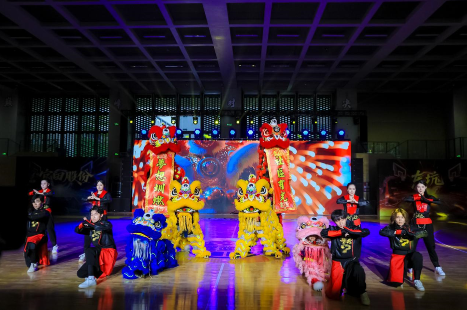 随着鼓点骤响,激情澎湃的《醒狮少年》拉开闭幕式序幕。狮子昂首,少年奋进,既展现出深圳人“敢闯敢拼”的精神,也呼应着赛场上每一次奋力的拼搏。紧接着,享誉国内外的JS花式扣篮团队登场,将腾空暴扣与极限动作融为一体,迅速点燃全场热情。