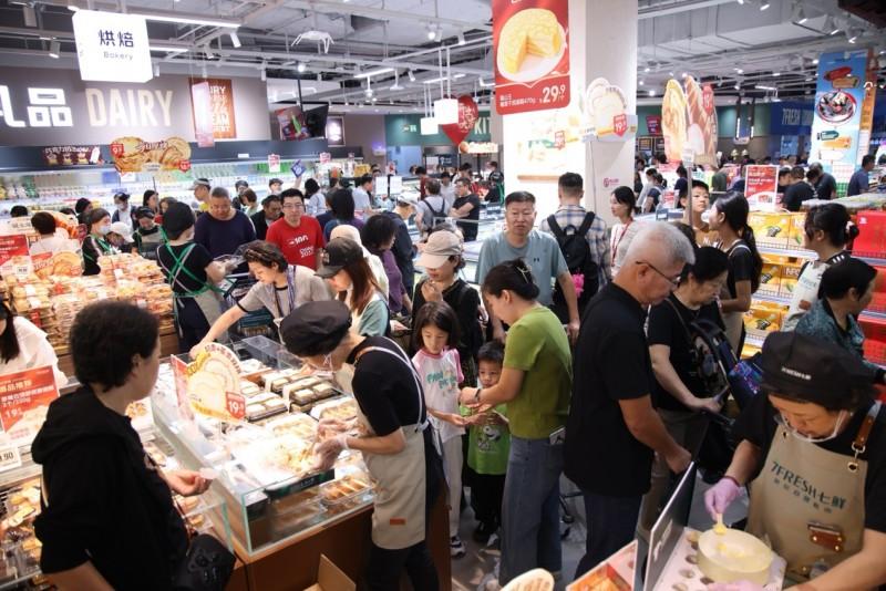 家住望京新城的李女士推着满载的购物车表示:“这里商品种类丰富,还能现场试吃,一次就能买齐节日所需,非常方便。”她的购物车中既有给父母准备的燕窝,也有孩子爱吃的榴莲千层蛋糕,还有中秋家宴所需的三文鱼和大闸蟹,真正实现了一站式购齐。
