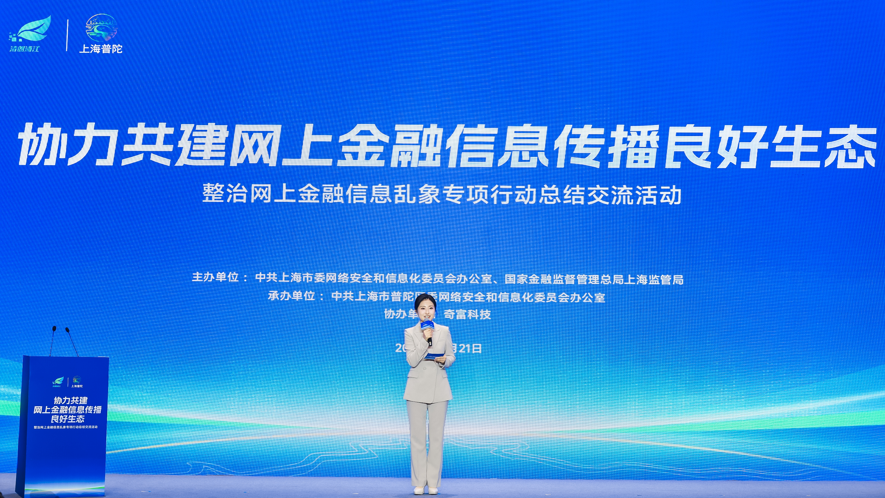 11月21日,由上海市委网信办、上海金融监管局联合主办,普陀区委网信办承办,奇富科技协办的“清朗浦江·e企共治”整治网上金融信息乱象专项行动总结交流活动,在半马苏河国际会议中心举行。来自监管、网络平台、金融机构等代表齐聚一堂,以“协力共建网上金融信息传播良好生态”为主题,共话治理经验、协商共治良策。国家金融监管总局金融消保局副局长向巴泽西,上海市委网信办主任范小伟,上海金融监管局局长綦相,普陀区委书记胡广杰,上海金融监管局副局长曹光群,上海证监局副局长王登勇,普陀区委常委、副区长李荣华等出席活动。