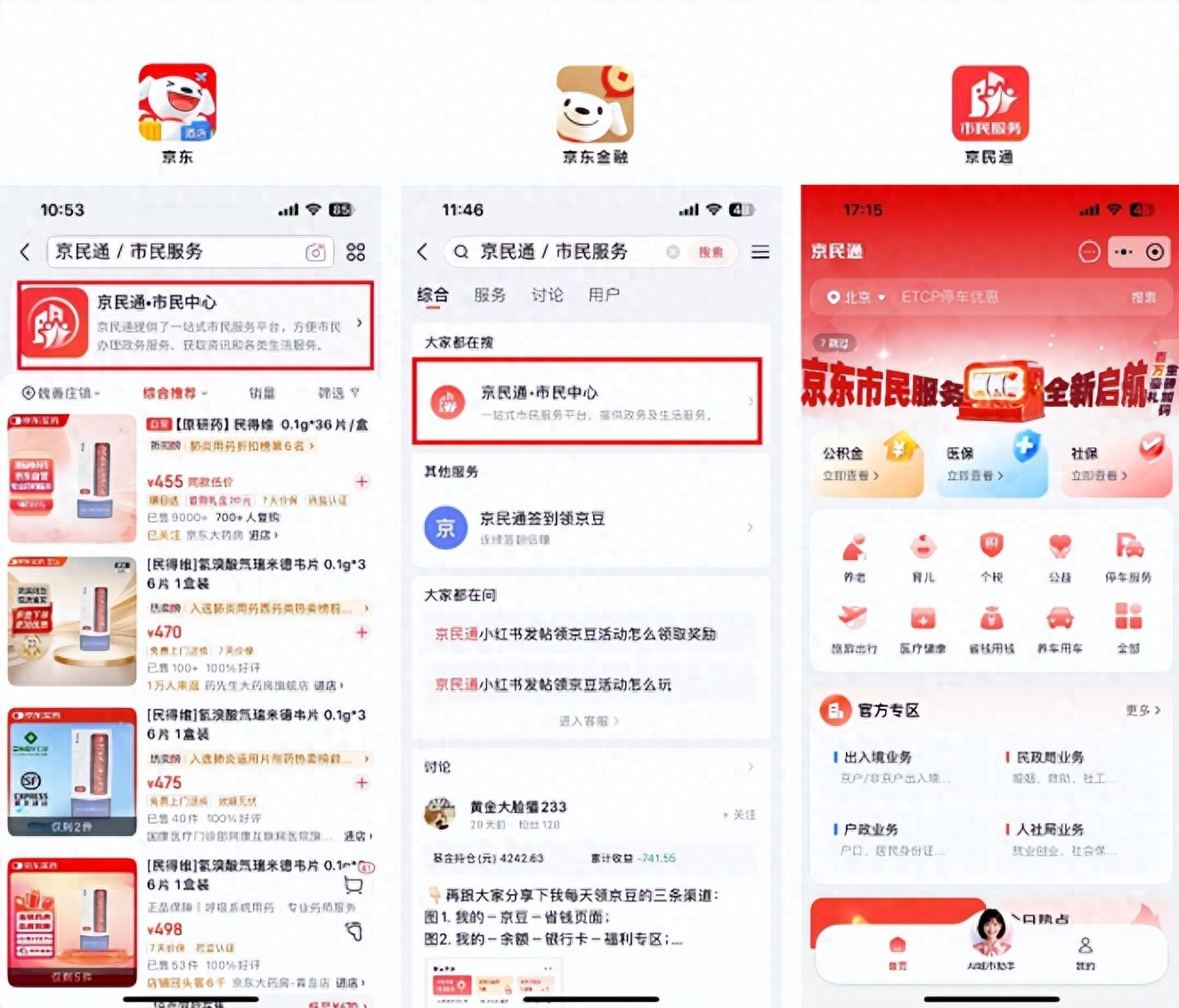 即日起,用户只需打开京东App或京东金融App,在首页搜索“京民通”或“市民服务”即可一键进入,轻松办理公积金查询、医保报销、社保缴纳、个税申报、育儿补贴申领、养老资格认证等高频政务事项。同时,平台还聚合了生活缴费、快递寄收、定点药店查询、旅游出行、求职就业等多元便民服务,真正实现“办事不出门、服务在指尖”。