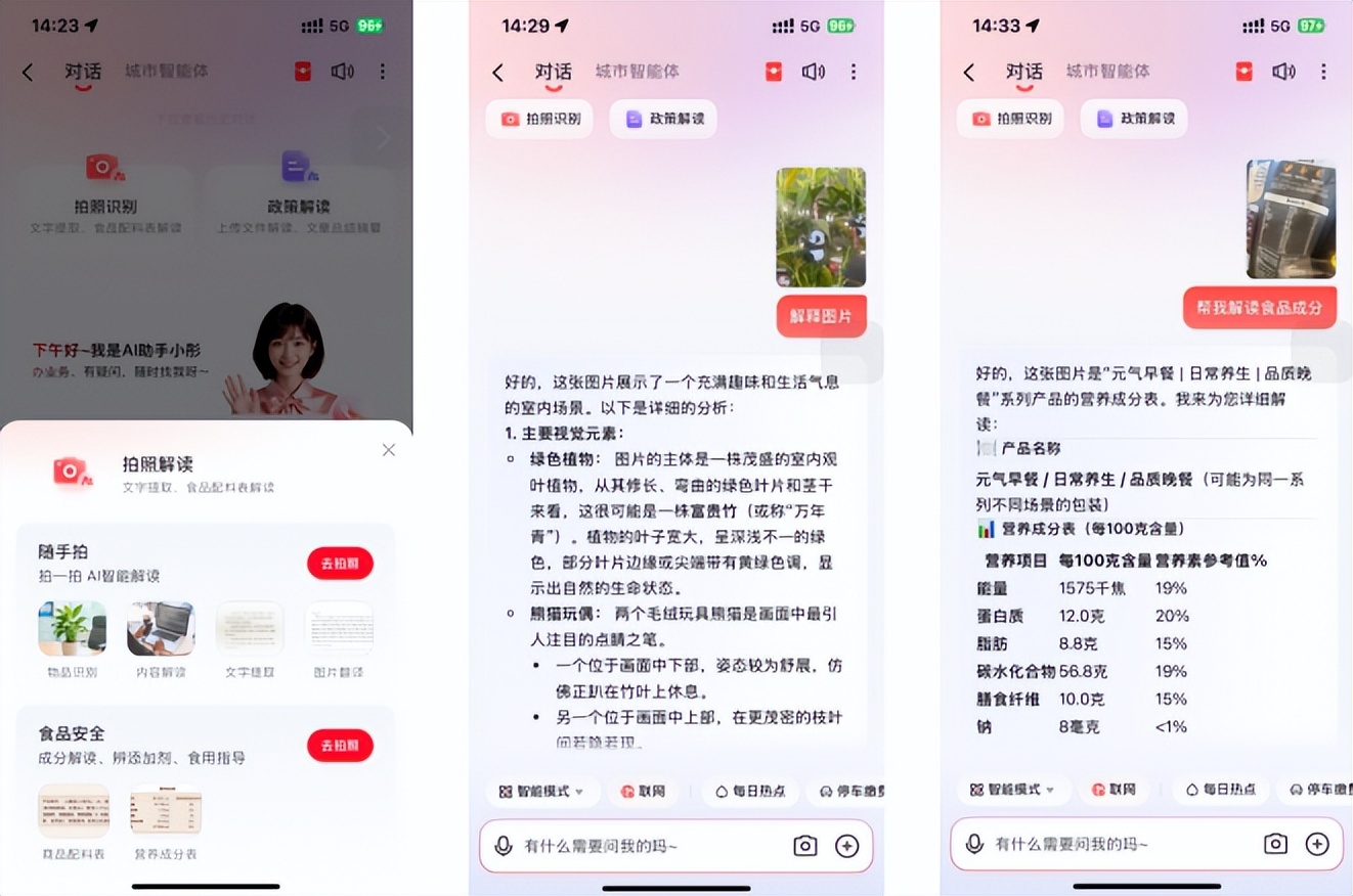 · 拍照识别:用户可对纸质材料、证件、票据、食品包装等进行拍照,系统自动完成文字提取,并结构化呈现关键信息;