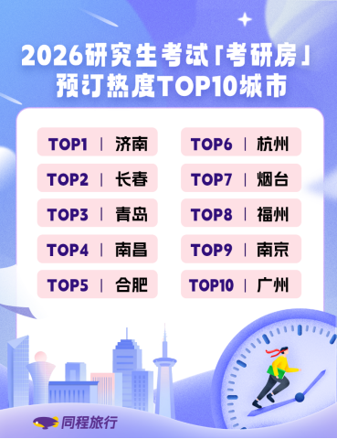 12月10日,2026全国研究生招生考试准考证开放打印。随着考点和考场等考试信息正式下发至考生,“考研房”迎来预订高峰。12月10日零时至上午10时,同程旅行平台“考研订房”板块的访问量大幅增长,“考研房”预订热度较9日全天增长超10倍。