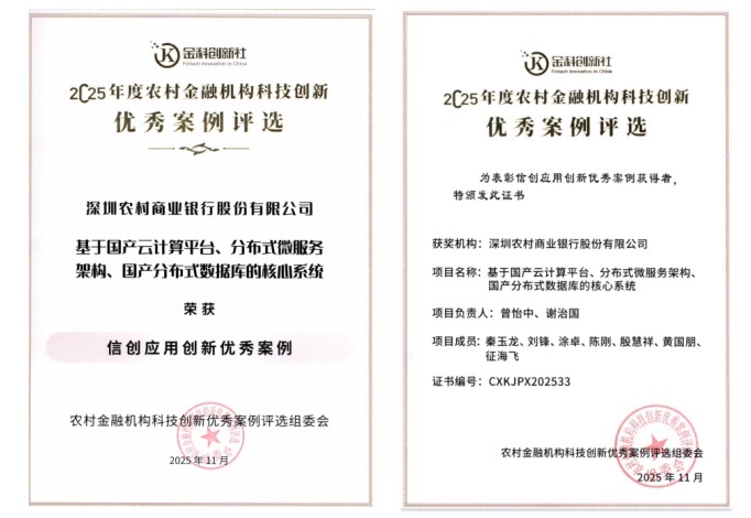 另一项奖项——“信创应用创新优秀案例” ,则将焦点对准了三代系统在信息技术应用创新(信创)领域的突破性实践。在“2025年度农村金融机构科技创新优秀案例评选”中,深圳农商银行的“基于国产云计算平台、分布式微服务架构与国产分布式数据库的核心系统”项目,从众多案例中脱颖而出。