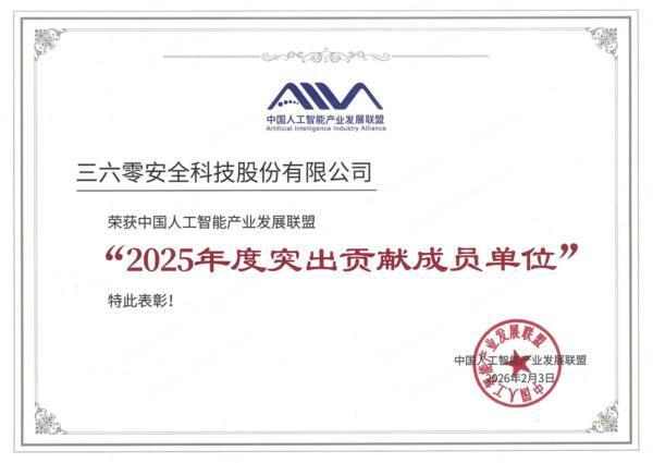 近日,中国人工智能产业发展联盟第十六次全体会议在北京召开。会上,360集团(601360.SH,下称“360”)凭借在人工智能技术创新、产业落地与安全治理等方面的系统性贡献,荣获“2025年度突出贡献成员单位”称号。该荣誉充分肯定了360在推动“人工智能+”行动纵深落地、加速人工智能与实体经济深度融合中的先锋与引领作用。