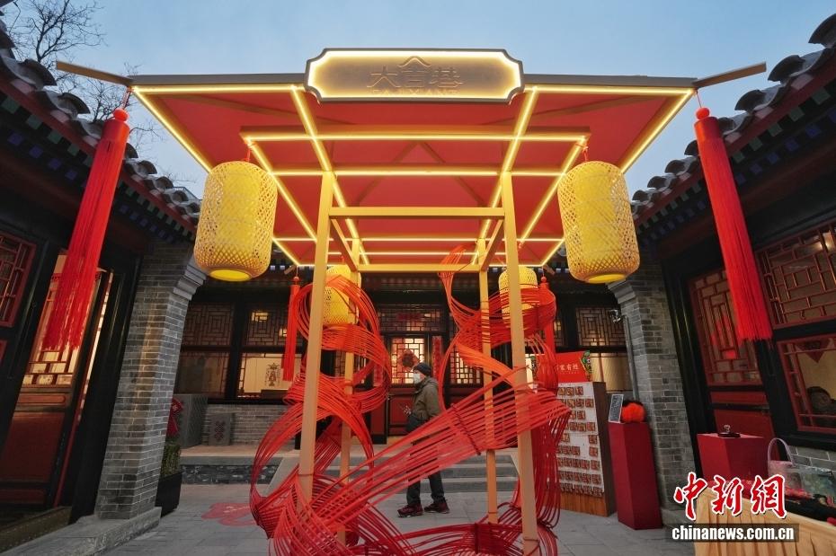 2月9日,北京中海大吉巷的“古院藏春”景观吸引市民。春节临近,该商场打造多种春节景观,为市民寻年味提供去处。中新社记者 张祥毅 摄