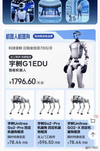 为降低消费门槛,让普通消费者敢试敢用,京东在去年推出机器人自营租赁业务,以“可买可租”的灵活模式,打造机器人消费全链路体验。在京东租赁自营旗舰店,宇树、智元热销机器狗日租金低至78元起,宇树U1、智元灵犀X2人形机器人(含上门工程师服务)的日租金低至1796元起。所有产品均为官方正品,搭配京东物流免费上门取送、可选择专业工程师上门调试,同时配套提供意外维修保障、质量问题快速响应乃至第三方责任险等服务保障。春节期间,京东机器人自营租赁订单已供不应求,排期已至3月。