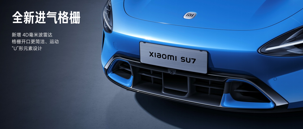 在外观细节方面,新一代SU7最明显的升级是采用全新的进气格栅设计,造型更加简洁运动,C形装饰环比例放大,制动散热风道开口更大,中央集成4D毫米波雷达,兼顾空气动力学与智能感知能力。