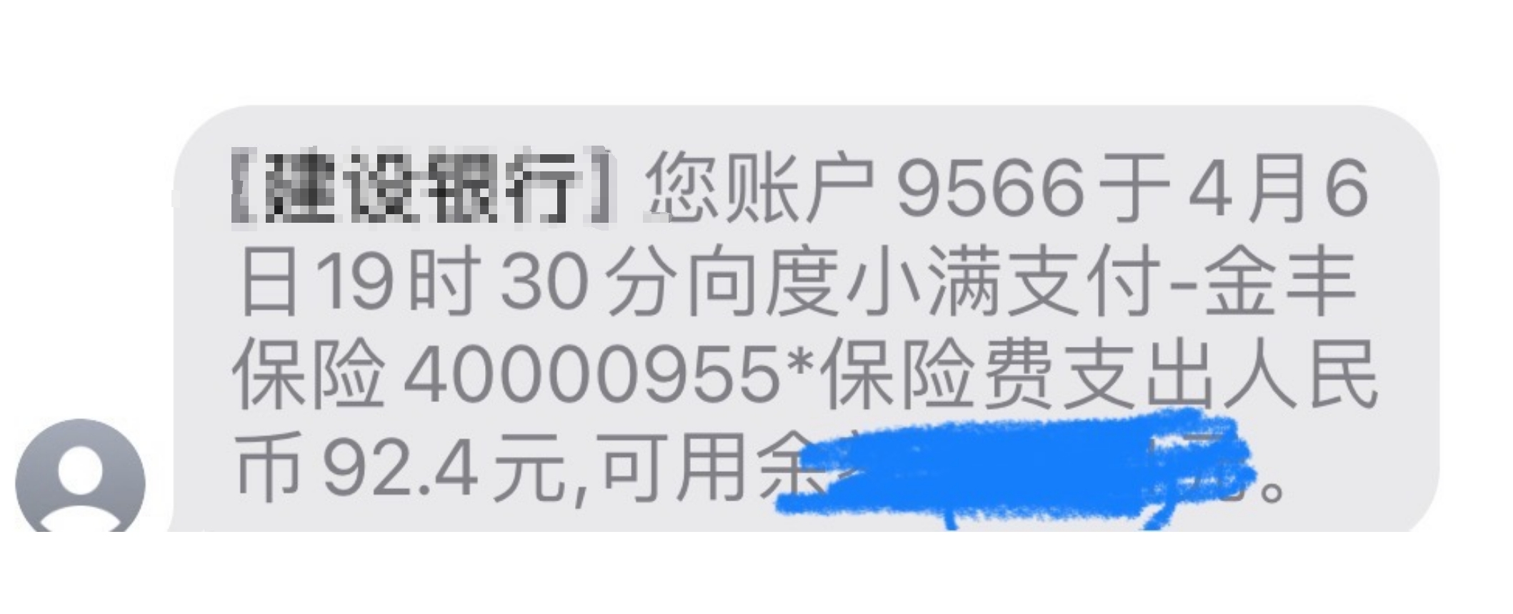 此外,还有两名消费者也反映了类似情况。赵先生(化名)称,4月6日19时30分收到手机短信,显示银行账户向 “度小满支付 - 金丰保险 40000955*” 支付92.4元保险费,他要求对方退款并作出解释。“我都不知道他扣的是啥,之前也没有用过。”赵先生表示。