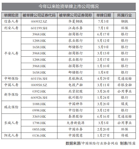 中国保险行业协会网站显示,截至7月3日,今年以来险资举牌上市公司19次,涉及15家上市公司。
