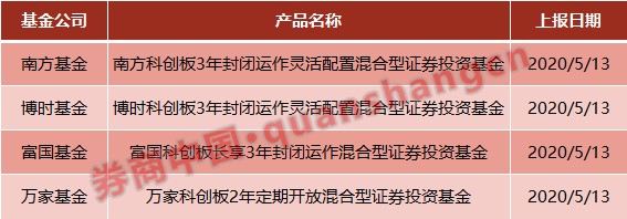 证监会官网显示,南方、博时、富国及万家4家基金公司于5月13日上报了4只科创板封闭运作基金。此次的4只产品均直接以“科创板”命名,这也意味着此类基金会将科创板股票作为主要投资方向。