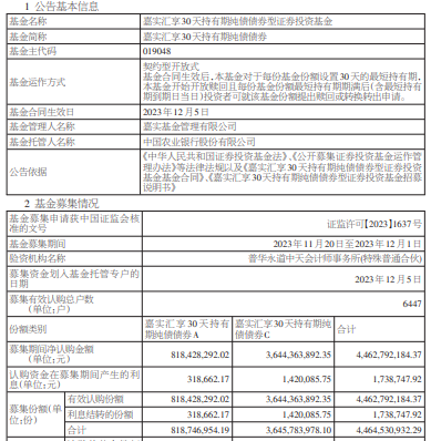 嘉实汇享30天持有期纯债基金成立 规模44.6亿