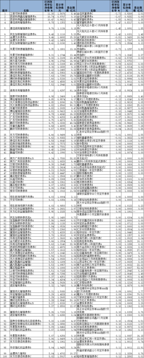 此外,建信润利增强债券A、建信润利增强债券C、民生加银增强收益债券A、金鹰元丰债券A、金鹰元丰债券C、民生加银增强收益债券C、华夏可转债增强债券A、华夏可转债增强债券C、南方昌元转债A在2月份也上涨超过9%(含9%)。