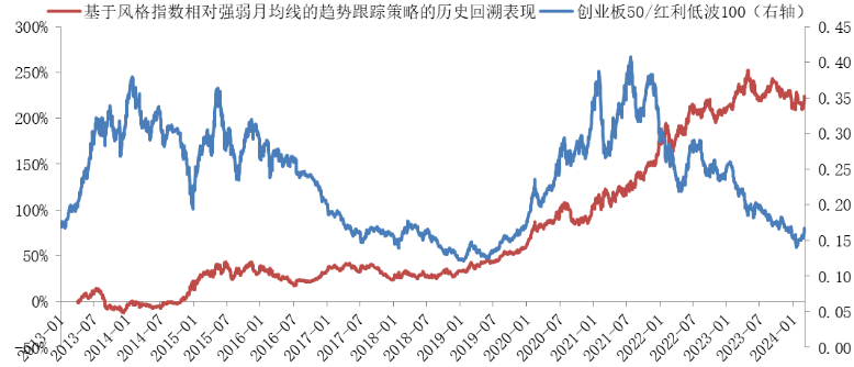 第二个值得关注的资金面策略是观察宏观资金面的量、价趋势。量的趋势可以关注广义货币供应量中更具活性细分存款项的变化,价的趋势则可以关注银行间资金市场利率和美债利率的变化。如果相关指标出现异动,可能就是值得重视的风格轮动的变盘时点。