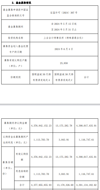 国联益诚30天持有期债成立 基金规模43.9亿元