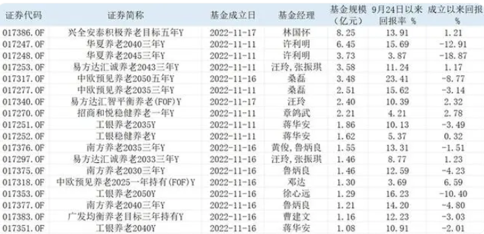 从单只基金的规模来看,有18只养老Y份额基金在1亿元以上,其中兴全安泰积极养老目标五年Y规模最大,为8.25亿元。从成立日期来看,这18只1亿元以上的产品成立日期均在2022年11月中旬,也正是个人养老基金刚刚开闸的时间段。